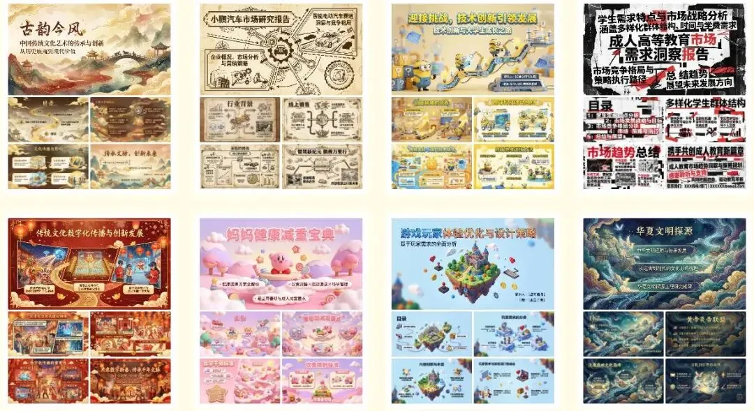 - 动态匹配算法:根据输入内容自动推荐模板,例如输入“财务年报”后,系统优先推荐深蓝色系、含数据图表的模板。