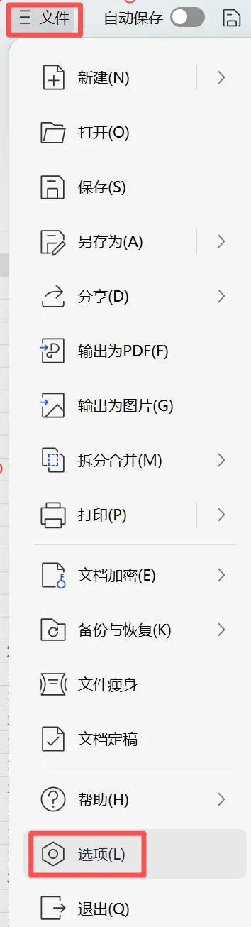 1. 点击Excel右上角【文件】,在底部菜单栏中选择【选项】,打开Excel选项窗口;