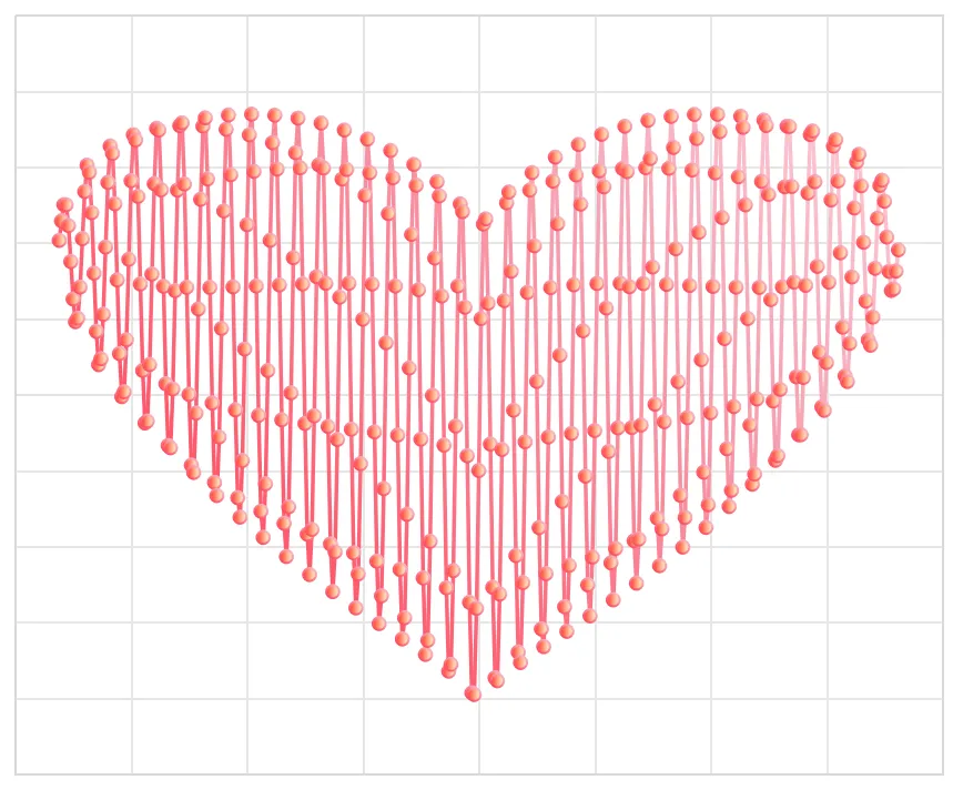 3. 删除图表中的网格线和坐标轴,简化画面突出爱心主体;