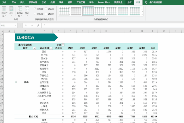 如果我们把透视表直接用作展示,可以把标签分类汇总和总计显示出来。