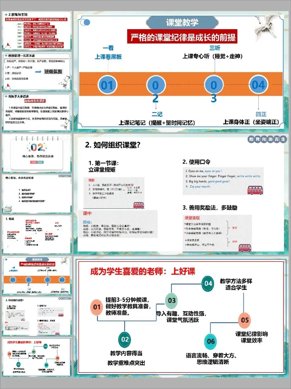 5. 追求有效课堂:内容得当,重难点突出,导入有趣,互动性强,方法多样,语言流畅,逻辑清晰。归根结底,成为学生喜爱的老师,秘诀就是“上好课”。