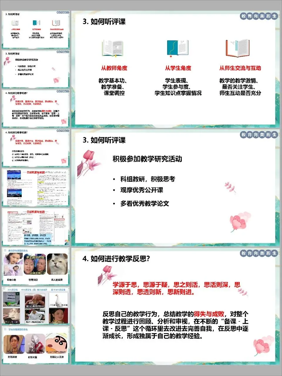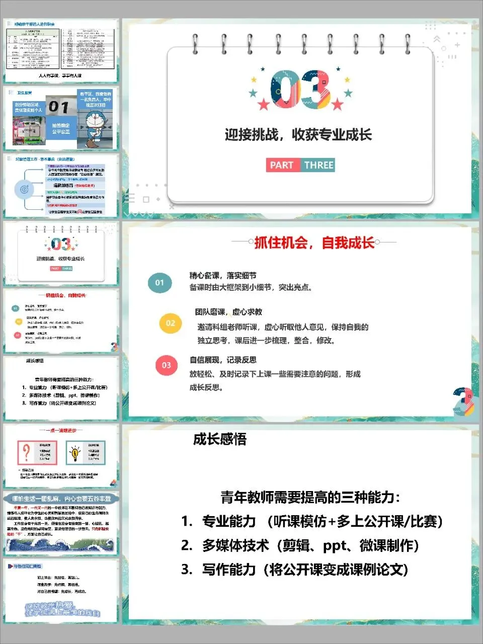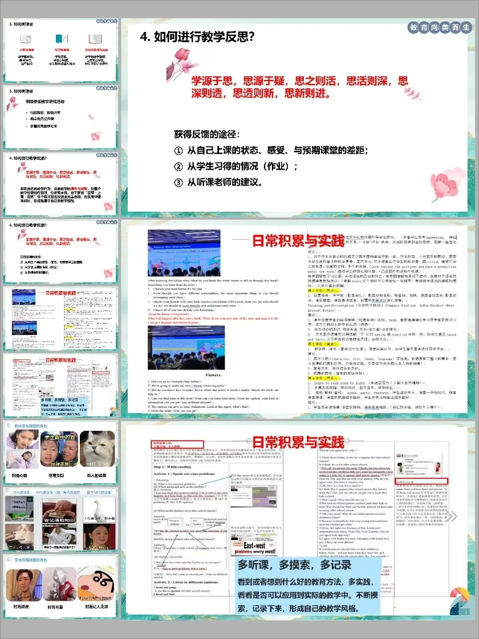 2. 自信展现,记录反思:上课时尽量放松,专注于教学本身。课后及时记录下灵光一现或需要注意的问题,这些点滴都是“成长反思”的宝贵素材。