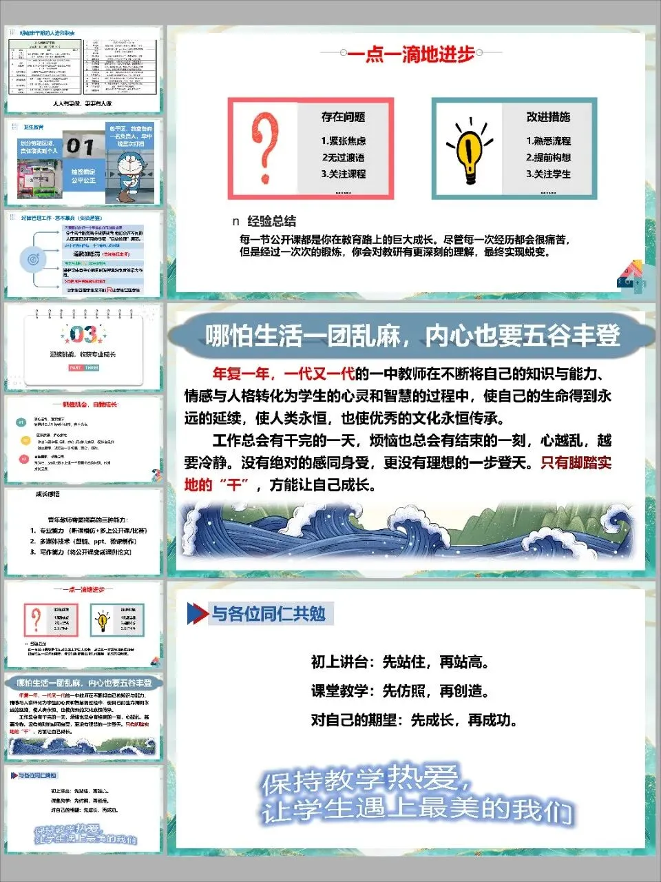 3. 持续学习,永不止步。 学习不仅指学科知识,更是教学方法、班级管理艺术、教育心理学……一切能帮助我们站稳讲台的东西。