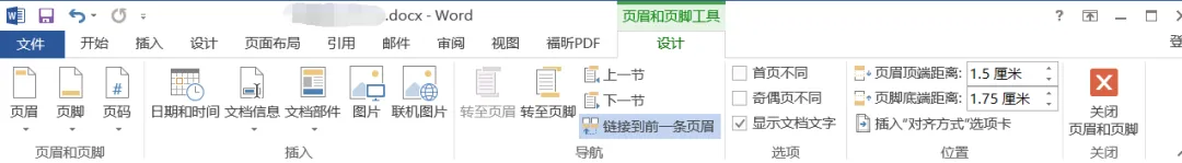 (这里注意,上述选项仅针对本次操作时选中的页眉或者页脚,也就是说如果需要将当前节的页眉和页脚均与上一节独立时,需要分别选中页眉区域和页脚区域,再分别取消上述勾选。)