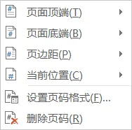 3.为了加入页码,点击上述工具栏中的"页码"选项,会出现对应的下拉菜单。首先通过"设置页码格式"选项设置所需插入的页码格式。