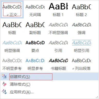 添加到样式库:表示将上述新创建的样式显示在 "开始" -> "样式" 工具栏中。