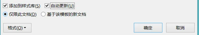 自动更新:表示若用户手动修改了应用了该新建样式的段落的格式,则该样式以及所有应用了该样式的文本均会自动更新为用户手动修改后的格式。