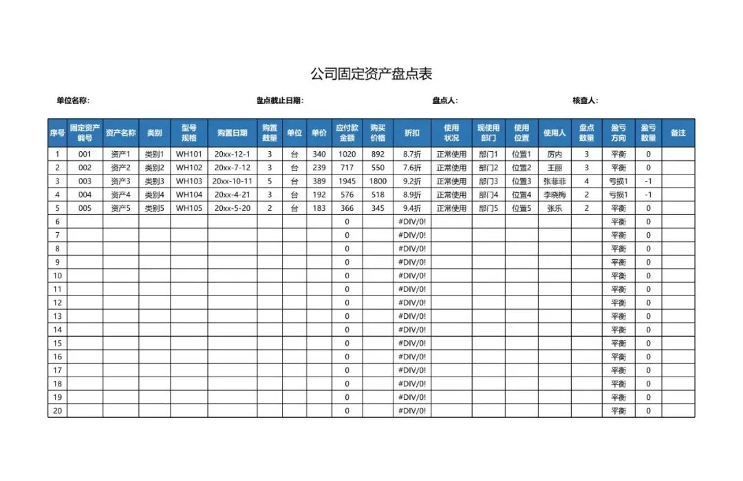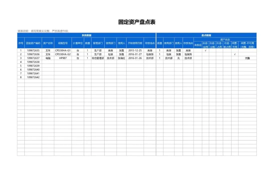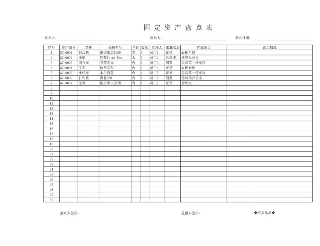 8款固定资产盘点表模板,WORD文档电子版,可免费下载打印