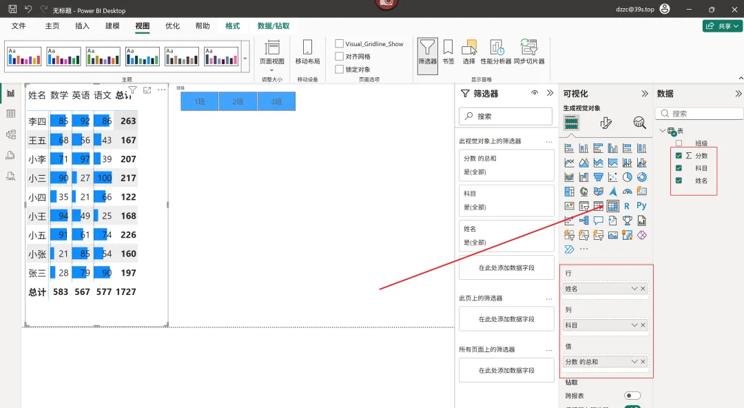今天开始,教大家如何使用,首先双击Power BI Desktop,进入后选择空白报告。1、选择主页,选择获取数据,一般用得比较多的就是选择Excel工作簿。当然下面还有很多种数据源,比如文本、SQL等各种数据库。根据提示选择了数据源后如果不需要处理直接点击加载即可。如果需要处理就点击转换数据进入Power Query进行处理加工清洗数据。2、按下面截图箭头所示,添加一个矩阵,然后将数据下面的三个表头字段拉入对应的行、列和值字段中。3、然后在设置字体格式大小行高及背景填充颜色和条件格式。数据条是在单元格元素下面设置,如果找不到哪个功能可以直接搜索关键字。如下图所示快速搜索后在进行设置。5、班级可以按下图所示,添加一个切片器,将班级放入字段中。然后在设置切片器的格式为磁铁即可。如果觉得此文对你有帮助,