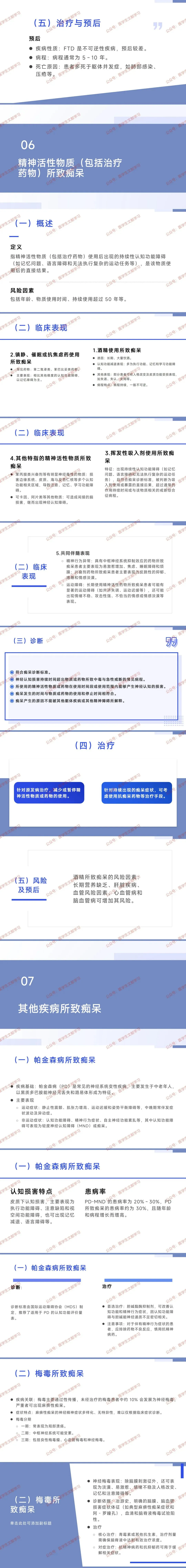 治疗:停用 / 减量致病物质,对症使用抗痴呆药物,长期饮酒者需补充营养(如维生素 B₁)。