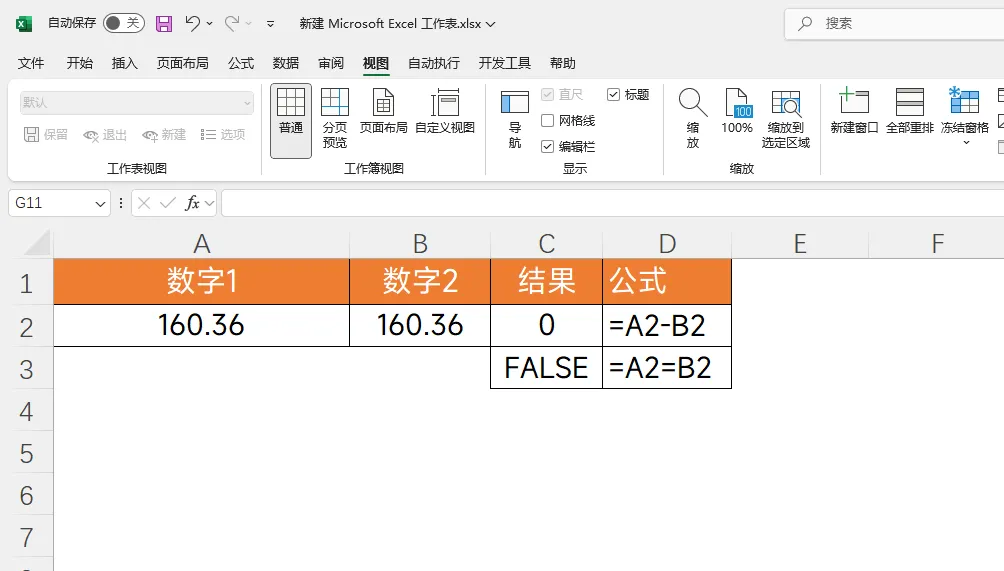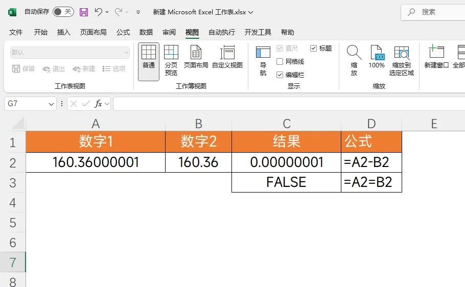A列和B列显示的都是160.36,用A2-B2计算结果为0,可直接用A2=B2判断时,却返回FALSE,这难道是Excel“自相矛盾”?真相揭秘