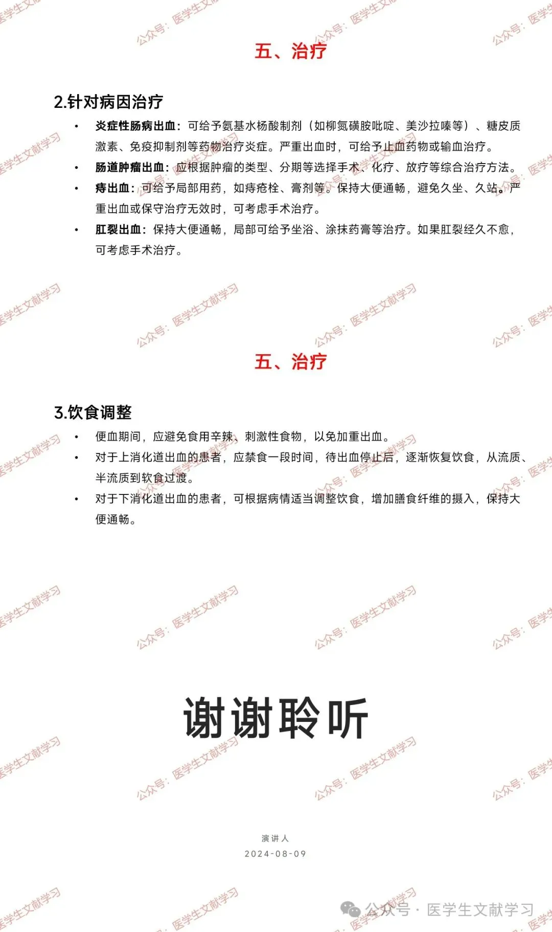 喷溅 / 滴落 + 无痛 + 鲜红可能是痔疮:不同分期的内外痔和混合痔均可引起大便出血,一般为粪便附有鲜血或便后滴血,严重时可能会有喷溅血出现,外痔一般无大便出血表现。