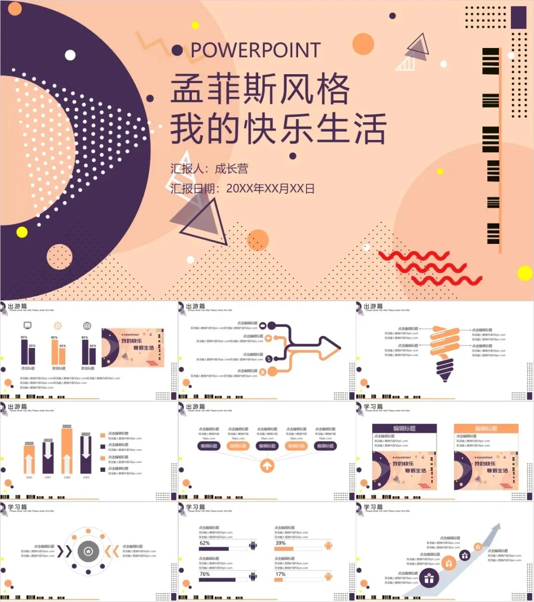 孟菲斯风格是什么大家已经知道啦,接下来就让我们一起欣赏一下孟菲斯PPT吧!