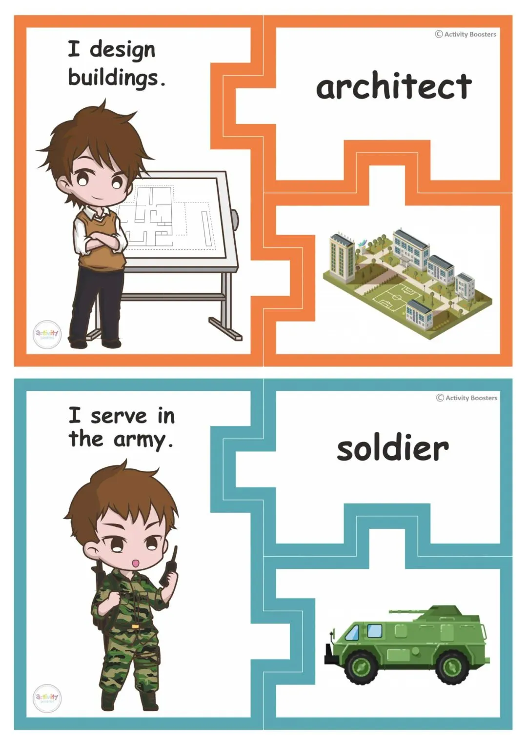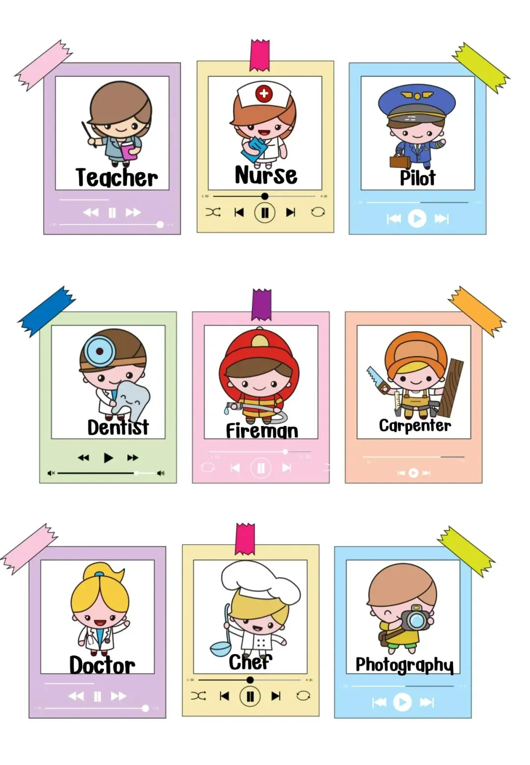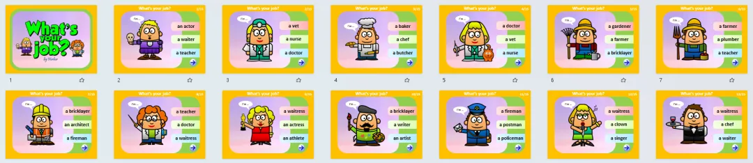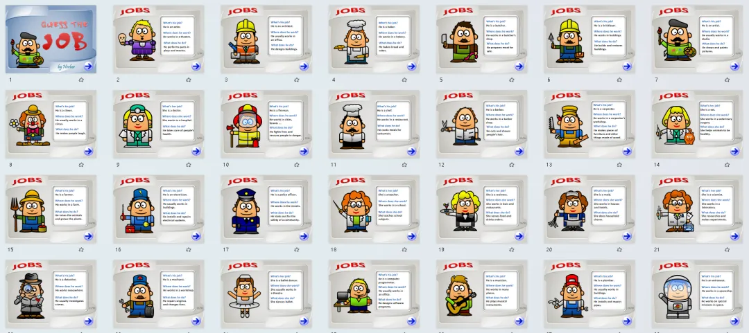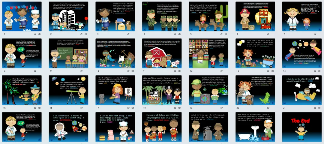 职业主题英语学习素材,含5套精美PPT、还有教具和练习等!