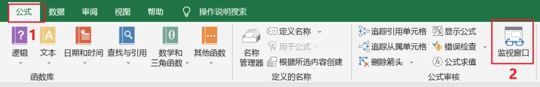 在 公式 选项卡中,点击监视窗口,就可以显示 监视窗口 了。