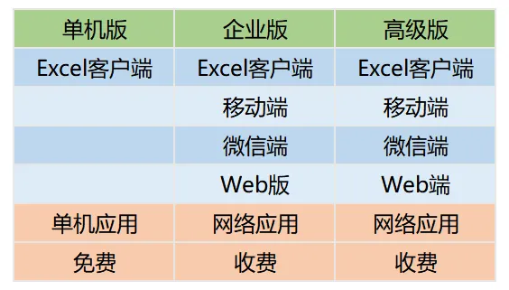 单机版是免费版本,只能基于Excel运行,所有功能与企业版Excel客户端一样,但是不能联网使用。