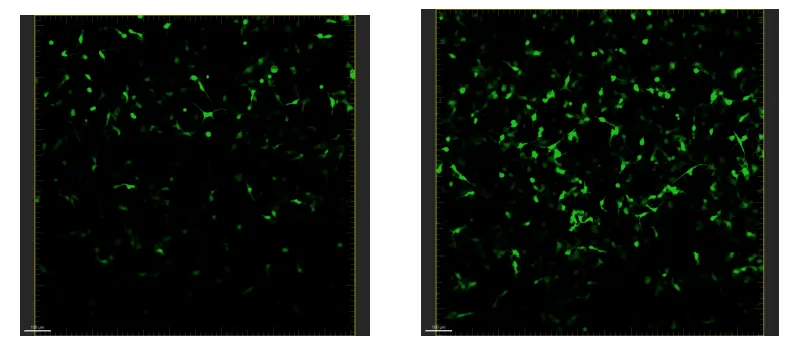 细胞状态:复苏后≤10代,转染当天汇合度70-90 %,无分化迹象(圆形、伪足少)。
