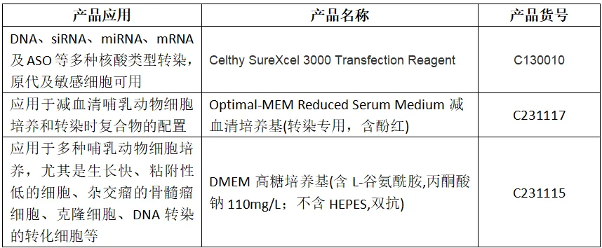 试剂耗材:Celthy SureXcel 3000转染试剂、Opti-MEM™ 减血清培养基、6孔板(或24孔板,按比例缩放)。
