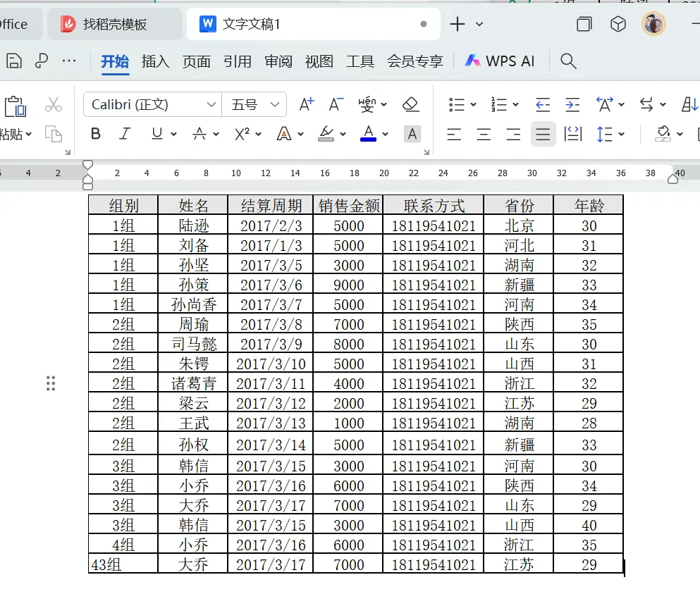 本文使用WPS表格演示