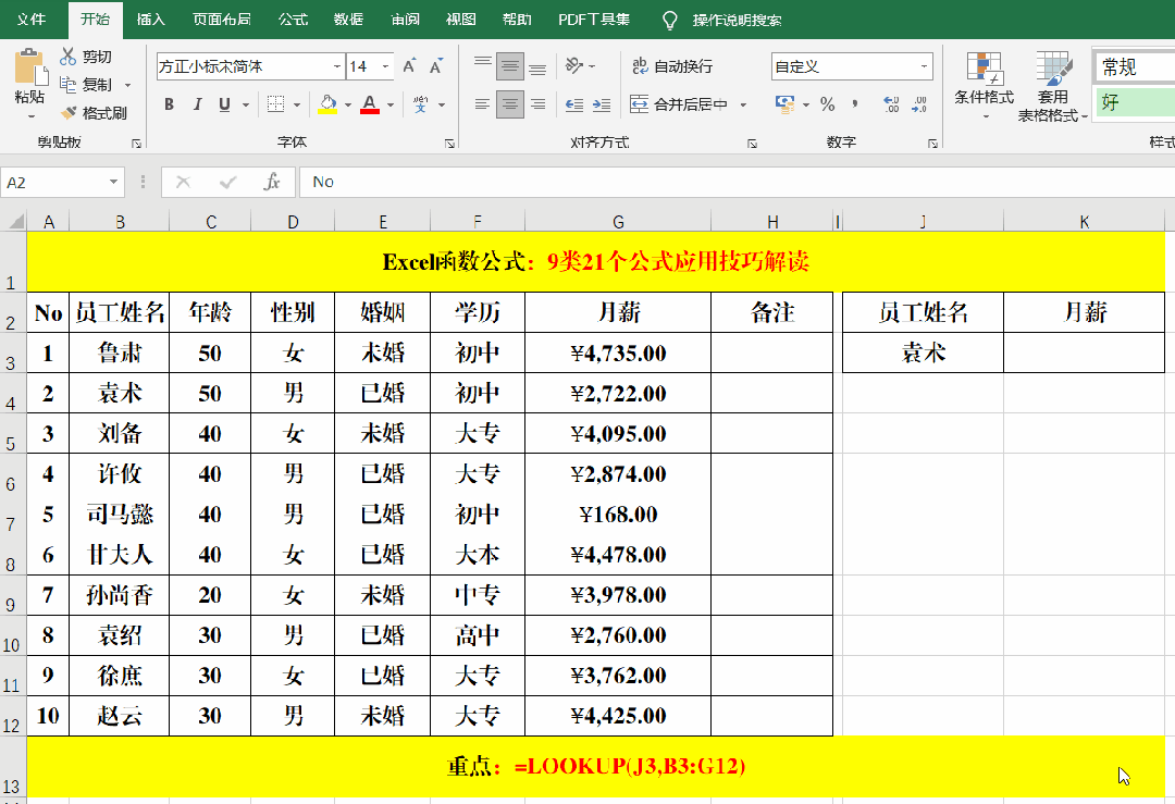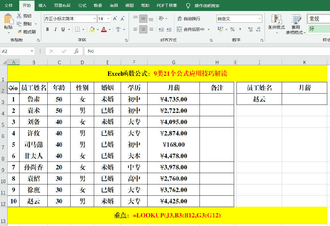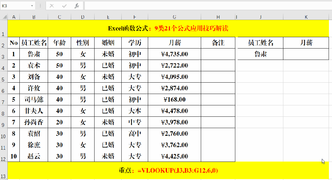 功能:搜索表区域首列满足条件的元素,确定待检索单元格在区域中的的序号,再进一步返回选定单元格的值。