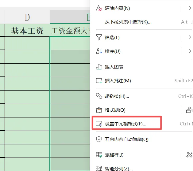 3. 选中大写这一列,右击表格 ,点击“设置单元格格式”!