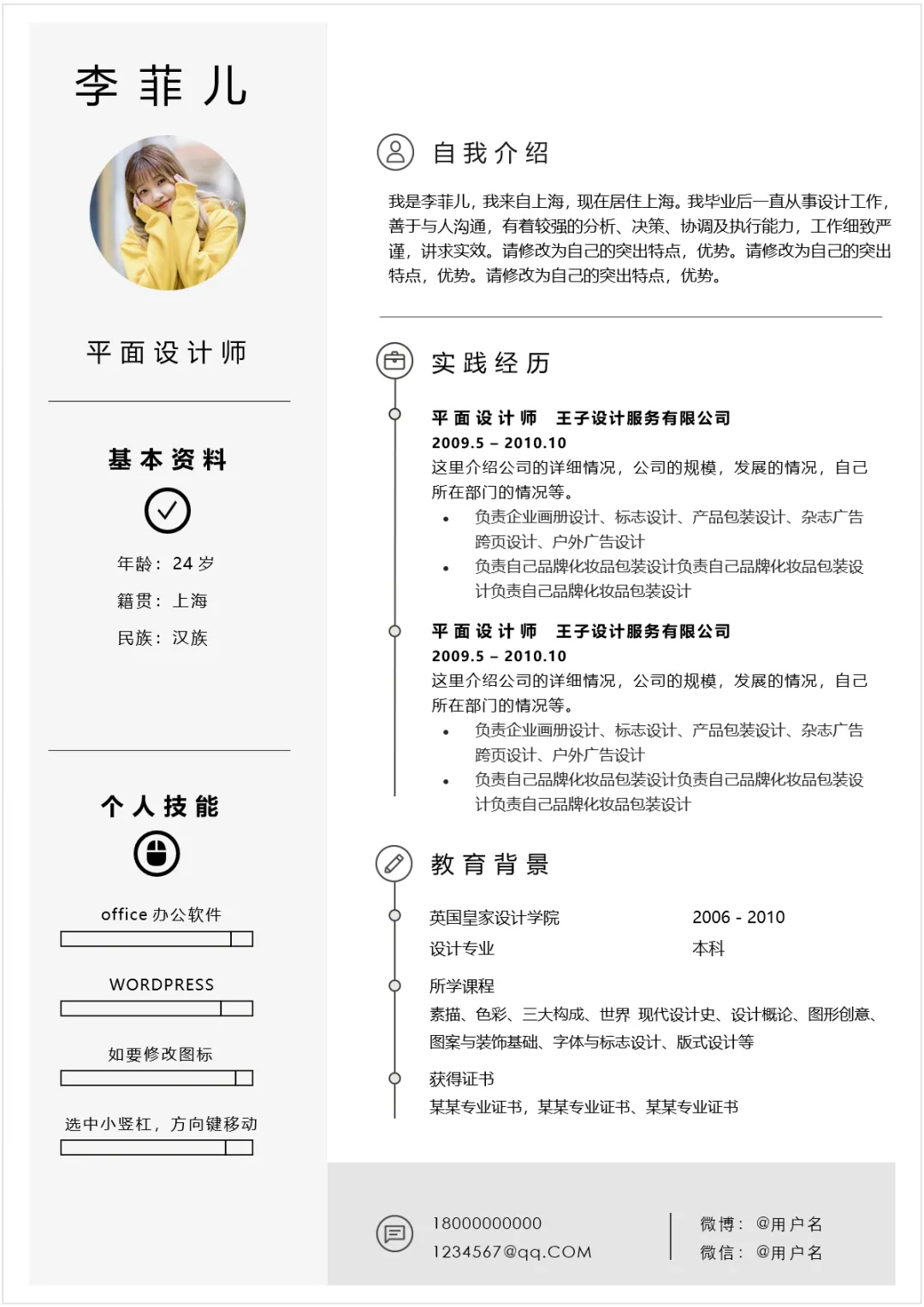 >平面设计师的简历模板,WORD文档电子版,可免费下载打印