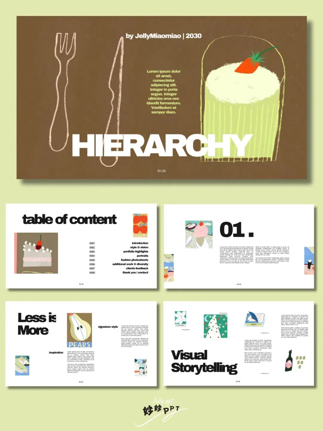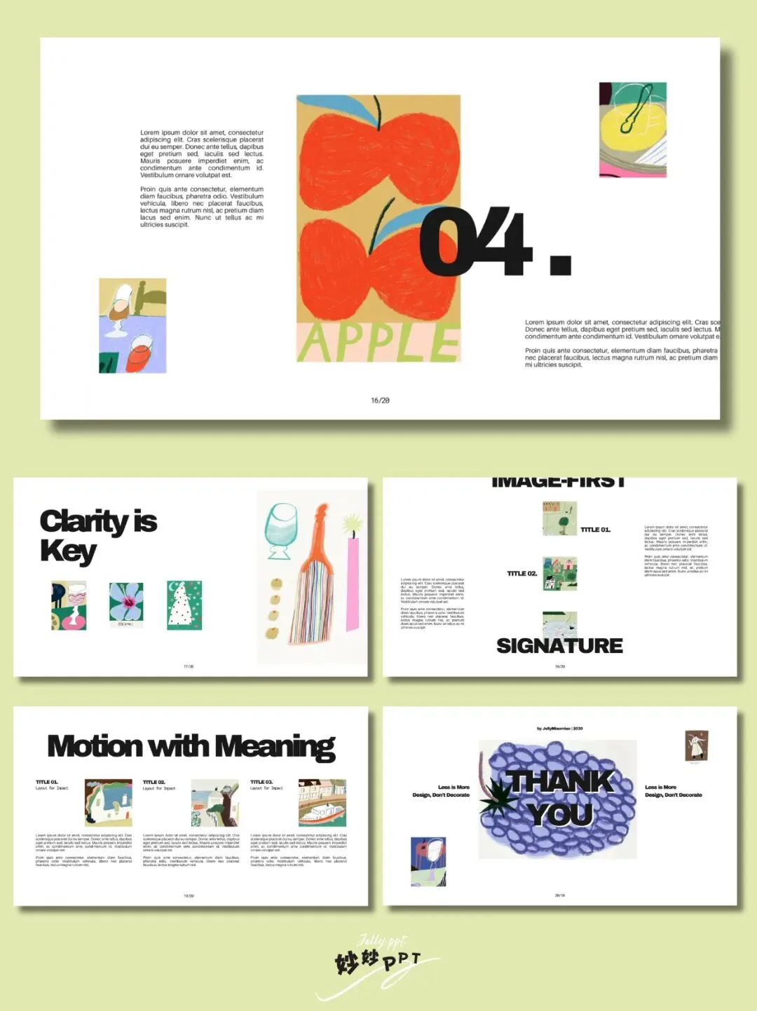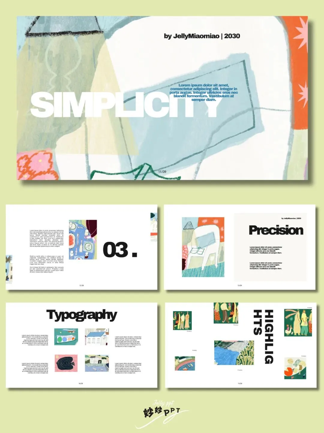 281|放大快乐 简约风PPT模板|作品集排版|高级感ppt|小众插画