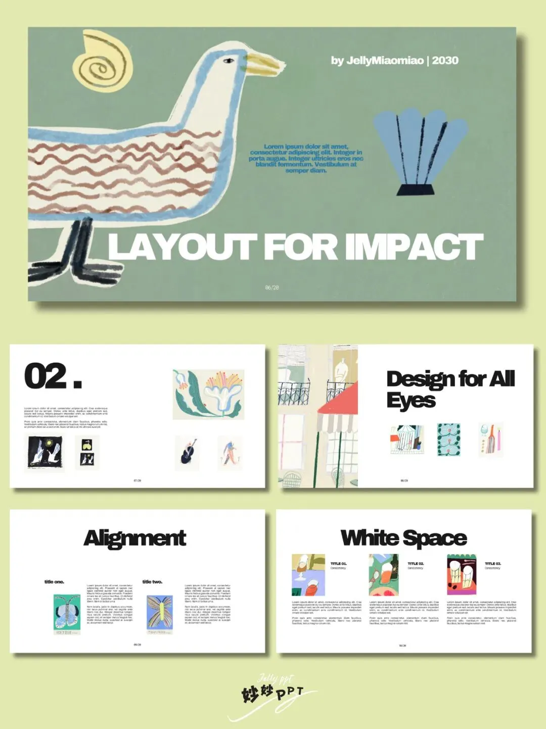 >281|放大快乐 简约风PPT模板|作品集排版|高级感ppt|小众插画