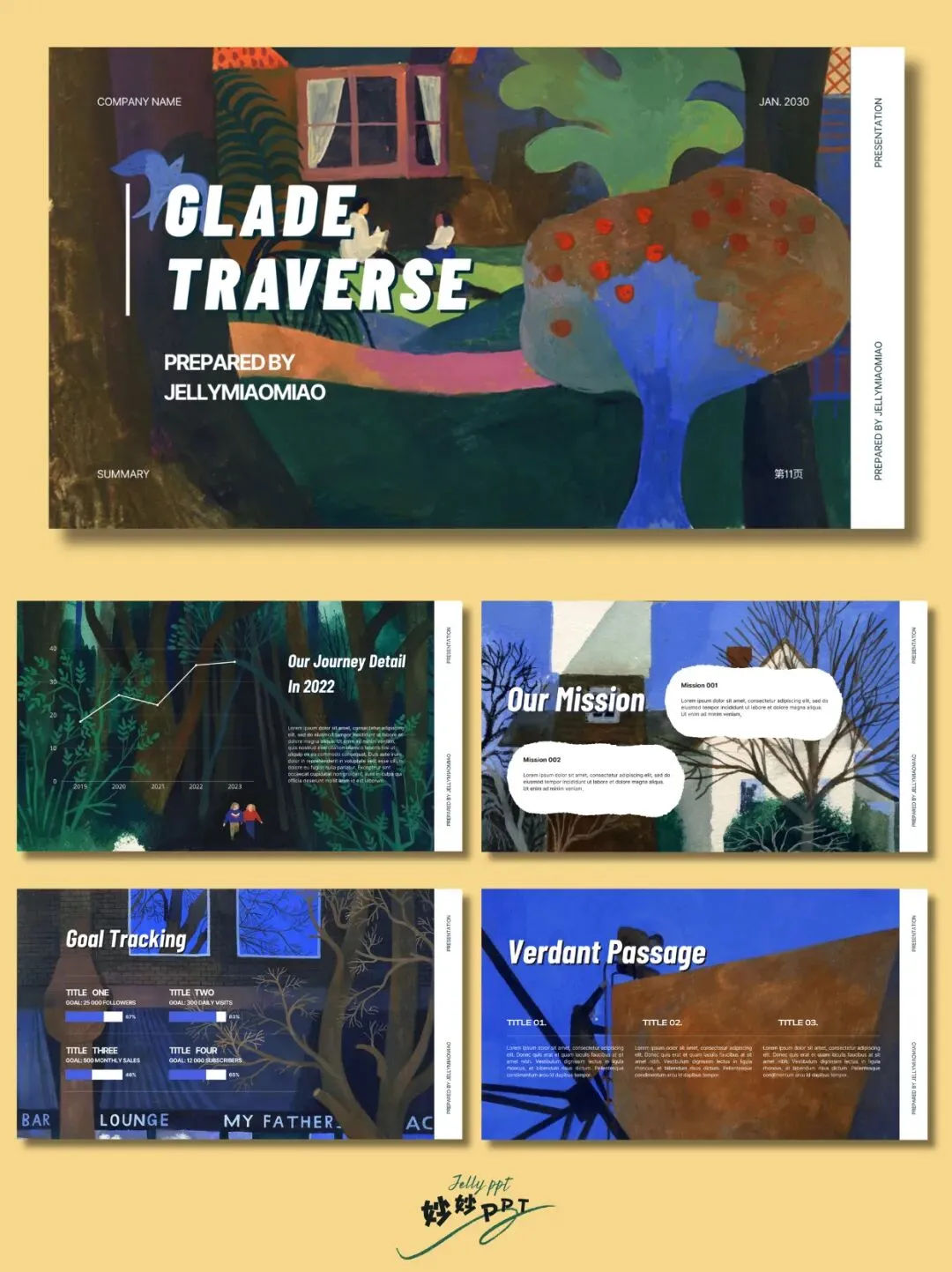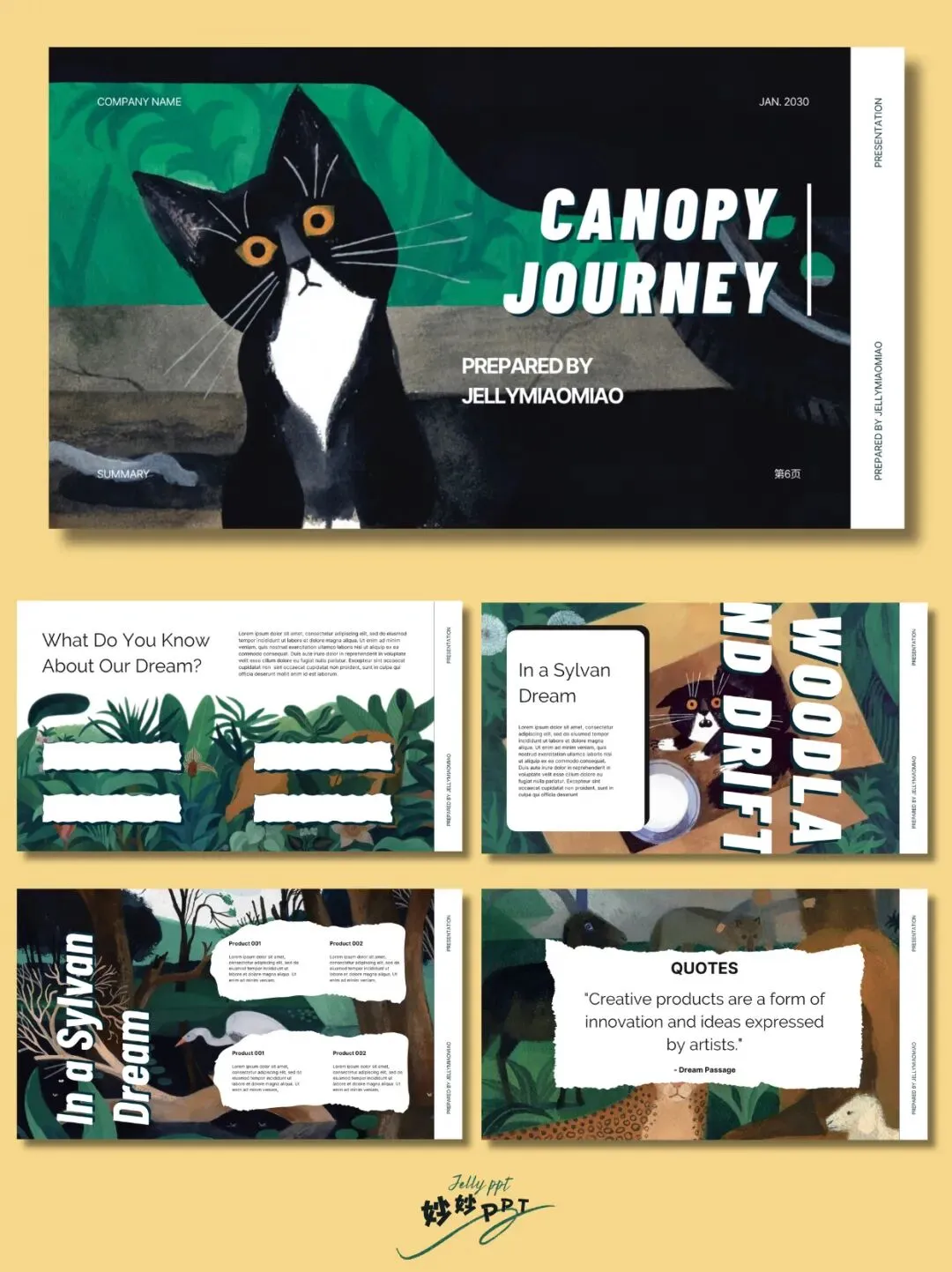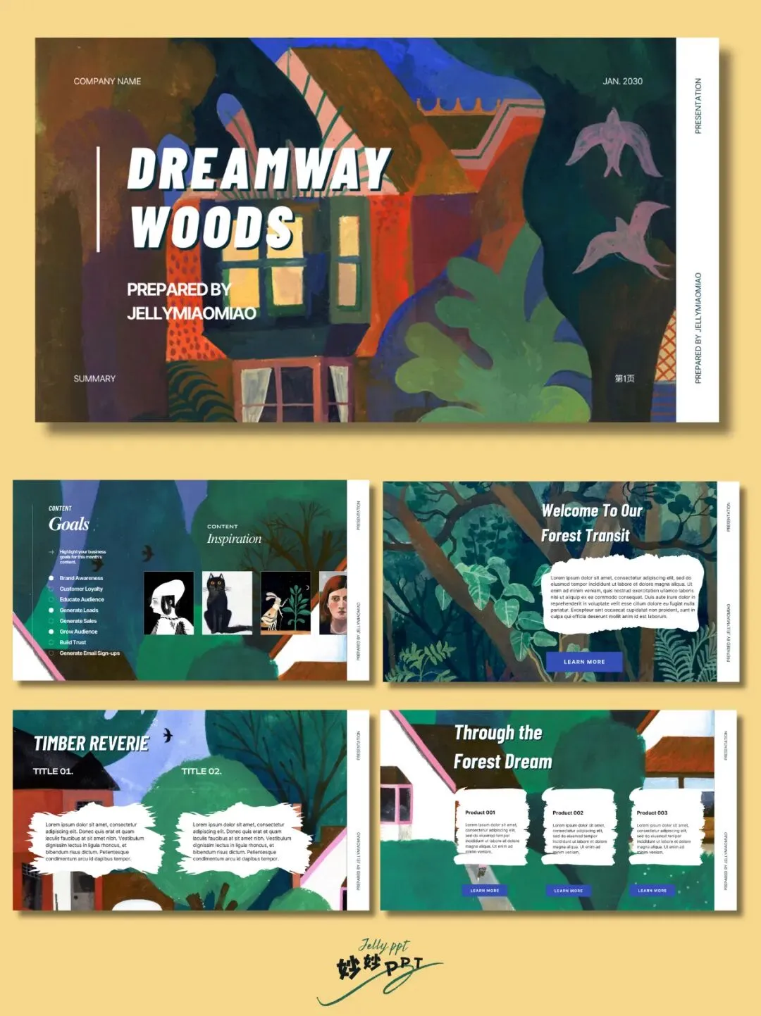 282|穿越森林梦 插画风PPT|绘本ppt|创意美术ppt课件|ppt背景图