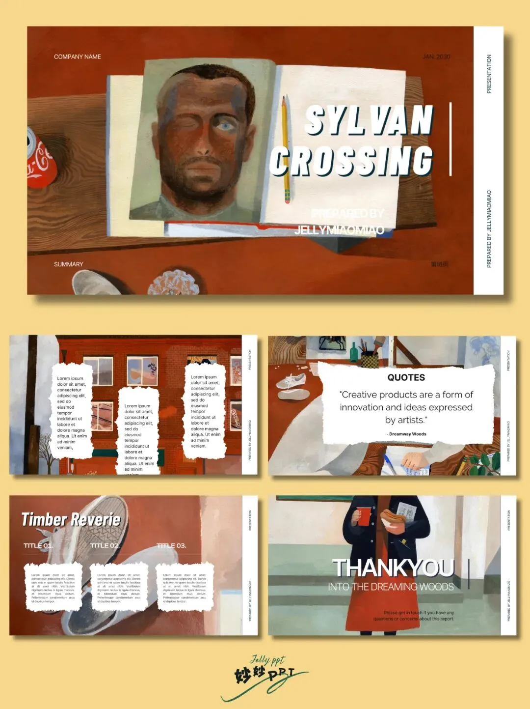 >282|穿越森林梦 插画风PPT|绘本ppt|创意美术ppt课件|ppt背景图