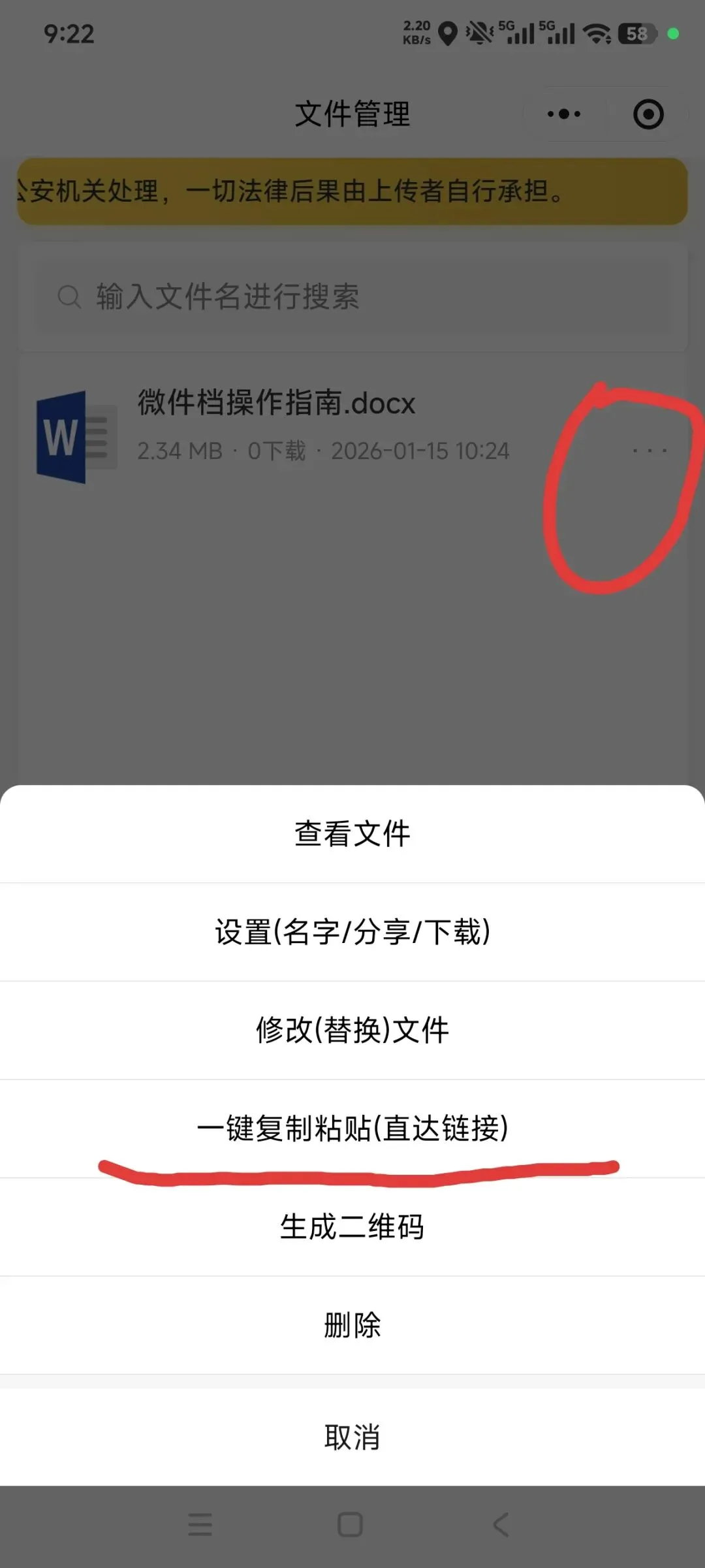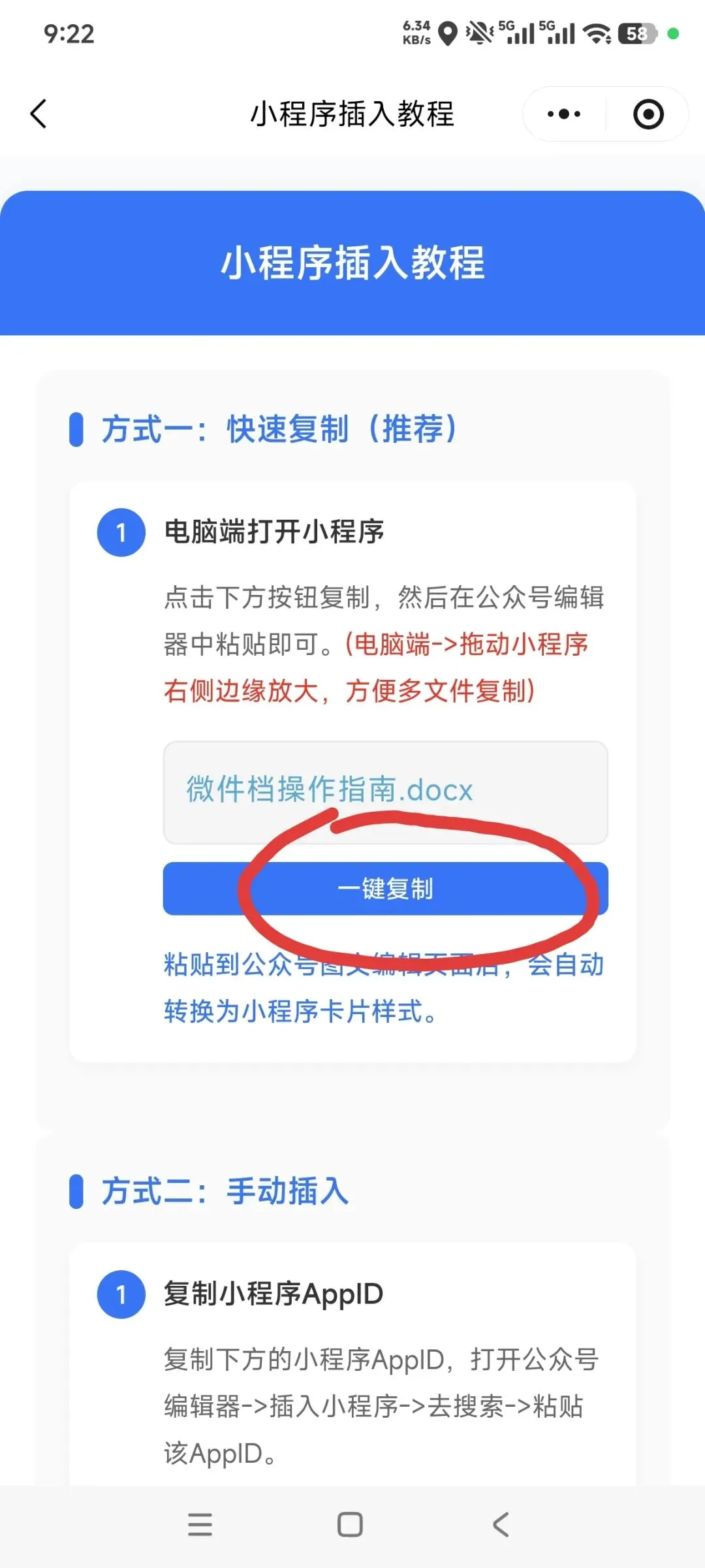 2:文件管理:查看文件,并复制小程序链接。粘贴到公众号文章即可。