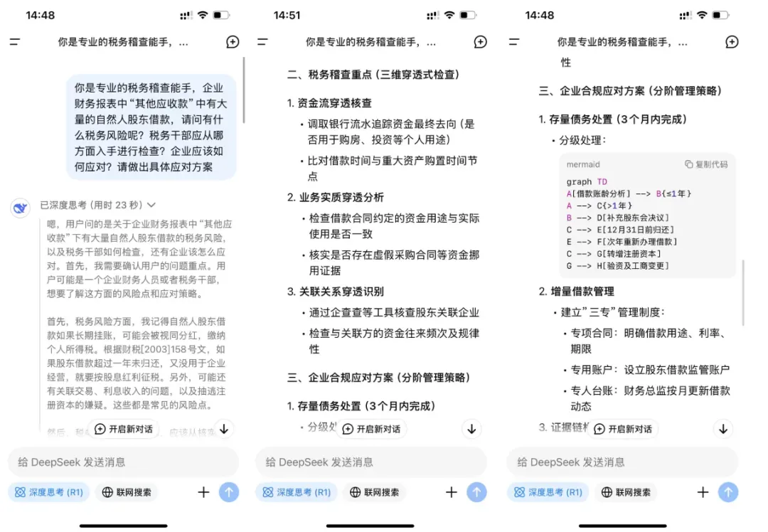 自从有了DeepSeek,我发现,很多财务伙伴将它和Excel搭配使用,工作效率瞬间开挂!比如,只需给Deepseek下达指令:“自动生成2024年度财务报告模板,包含利润表、资产负债表、现金流量表的核心指标,并附同比 / 环比增长率”,一份专业的财务报告模板就自动生成了。快速处理复杂数据>>>以前整理数据总结和复盘,几万行数据要手动筛选,繁琐公式输到手酸,加班3小时还总出错。利用DeepSeek,海量数据自动清洗,缺失值、重复值一键修复,高颜值可视化看板分分钟生成,相当省事👇做PPT更是绝了!利用Deepseek+Kimi,分分钟就能把财务三大报表(资产负债表、损益表和现金流量表)自动生成精美的、专业级PPT报告↓↓过去占用财务人员大量时间的基础性、重复度高的工作,AI工具的介入几乎都能取代,尤其DeepSeek的横空出世,更是让普通财务工作者人人自危。