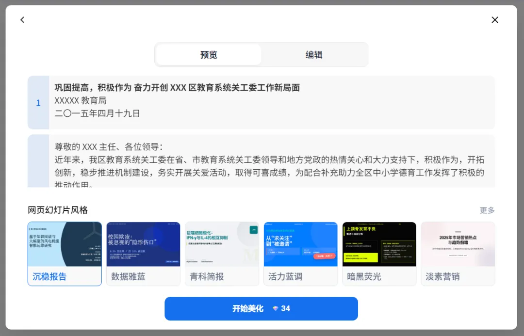 然后选择一个你喜欢的 PPT 风格,就可以开始美化啦
