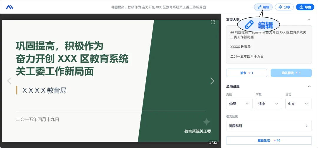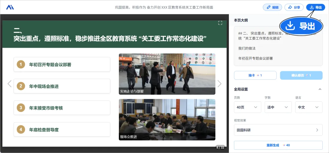 PPT都是基于我们上传的内容生成的,如果有不满意的地方还能打开编辑页面,每一页内容我们都可以进行在线编辑