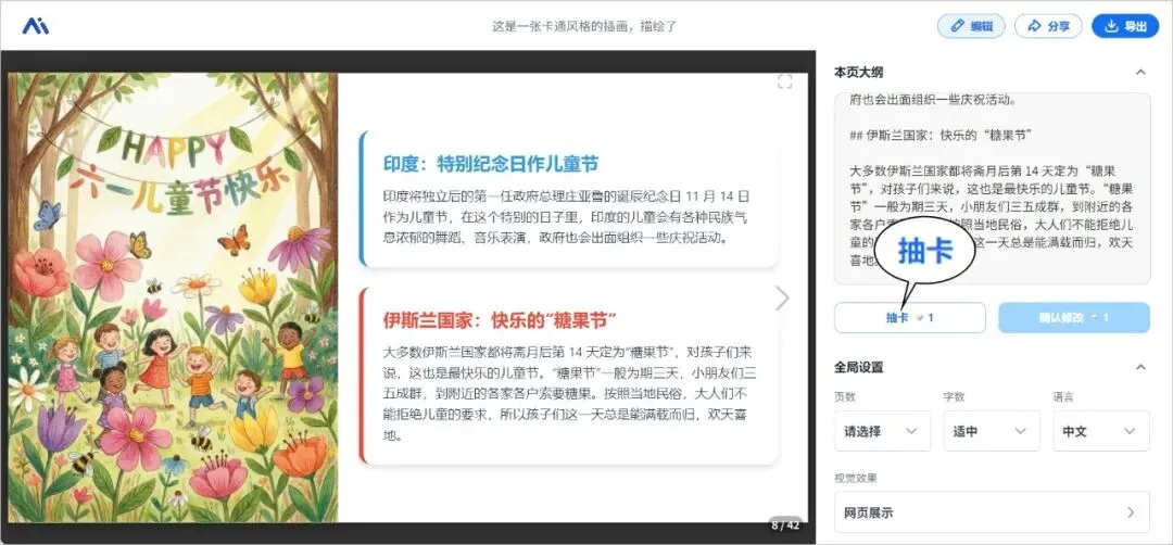 如果对生图结果、布局等不满意,还可以直接通过「抽卡」功能尝试重新生成,相当方便