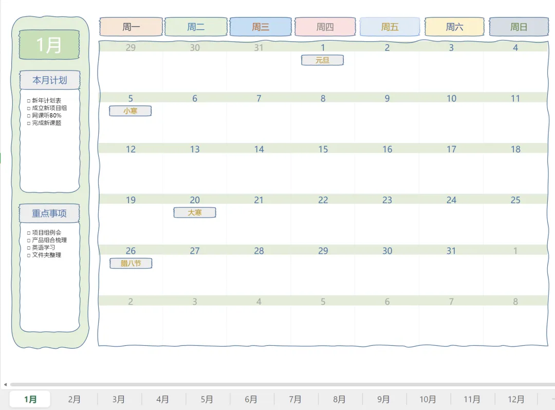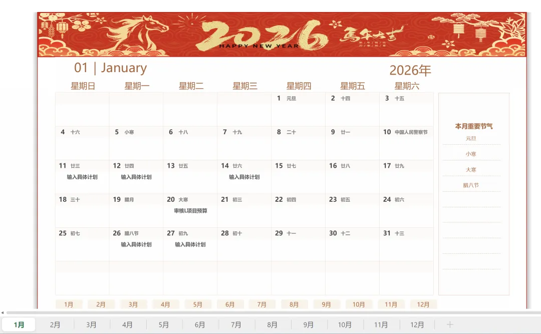 【10套】2026年马年日历工作计划表Excel模板免费分享