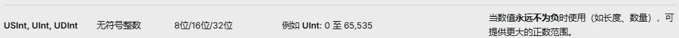 UInt代表一个非负整数。它的所有行为都围绕着“数值”展开。