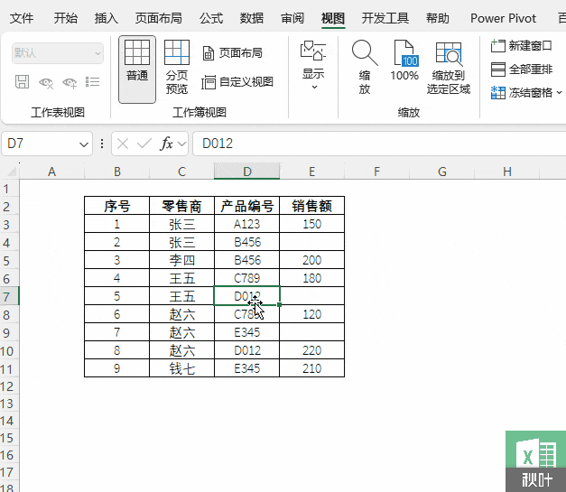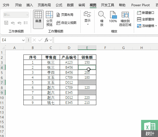 如果需要把表格剩下的部分都填上相同的值,比如,将剩下的「销售额」都记为 0,让表格更美观: