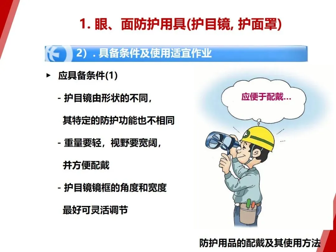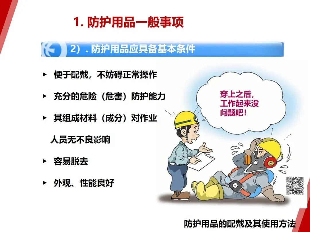 合格的防护用品得满足这些要求:戴着方便,不耽误正常操作;防护效果要到位,能有效抵御对应危险;材料对身体没不良影响;容易穿脱,外观和性能都得达标。