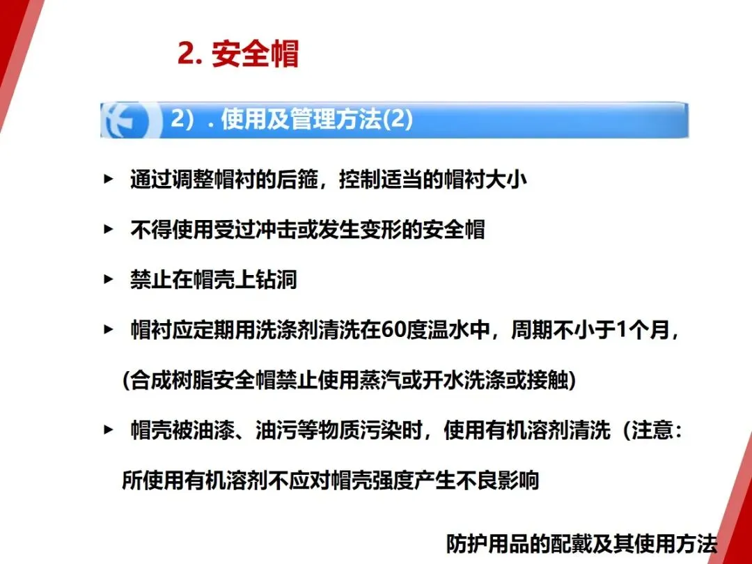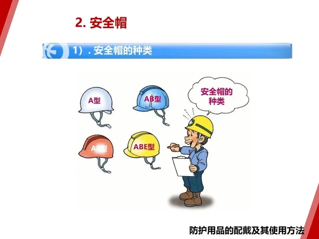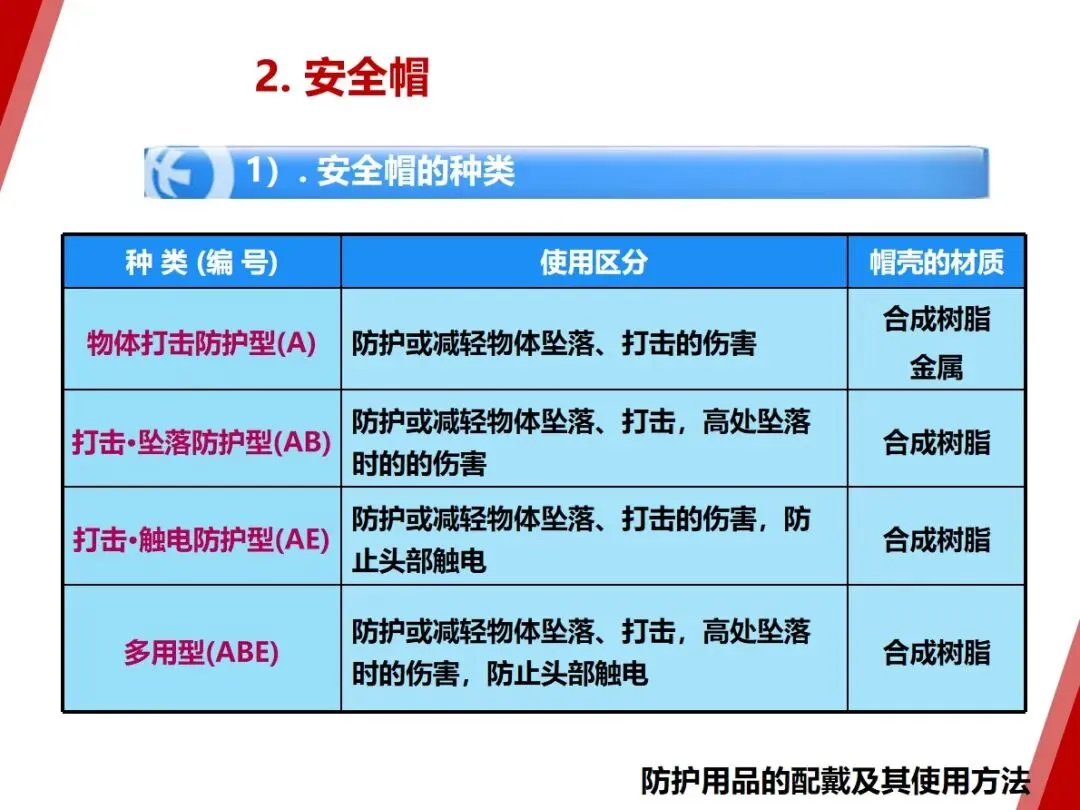 安全帽分四种类型,A 类防物体打击,AB 类新增高处坠落防护,AE 类可防触电,ABE 类是多用款。选的时候要贴合作业需求,野外作业优先白色 FRP 或 PC 树脂材质,戴时必须系紧下颌带,帽衬大小可通过后箍调节。千万别用受过冲击、变形的安全帽,也不能在帽壳上钻洞,帽衬每月用 60 度温水清洗一次,合成树脂款忌用开水或蒸汽接触,脏了用不影响强度的有机溶剂擦拭,发现龟裂、弹性变差就及时更换,避免暴晒老化。