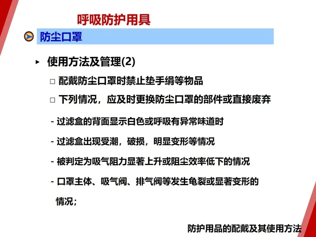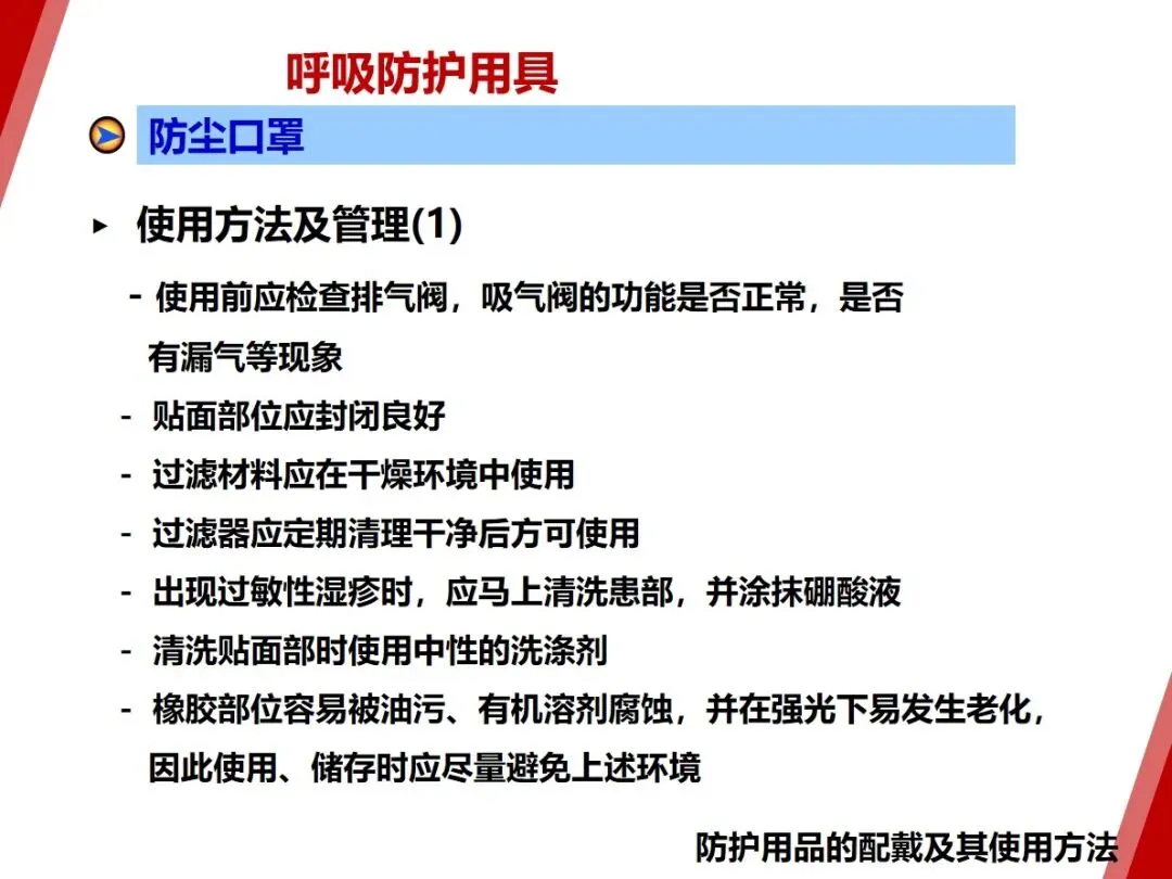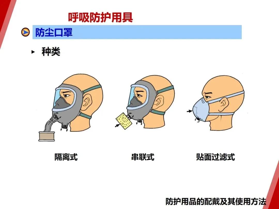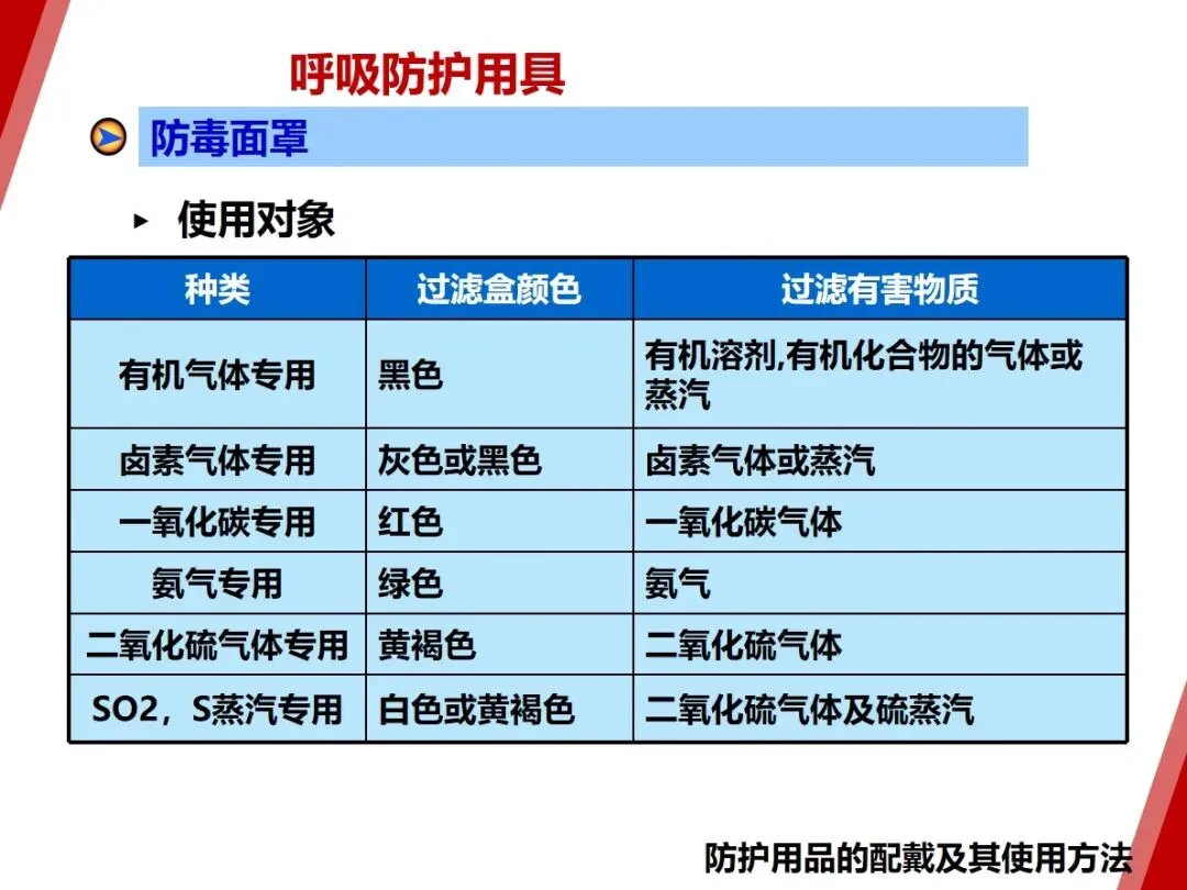 呼吸防护中,防尘口罩要检查阀门密封性,定期清理或更换过滤部件;防毒面罩需按有害物质类型选过滤盒,比如有机气体用黑色盒,一氧化碳用红色盒,确保防护精准。