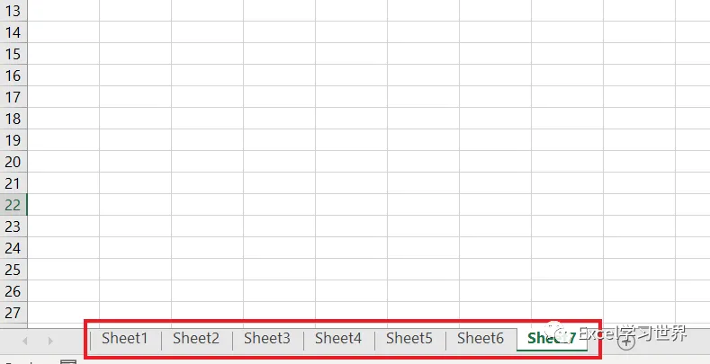 下图的工作簿中一共有 7 个工作表。