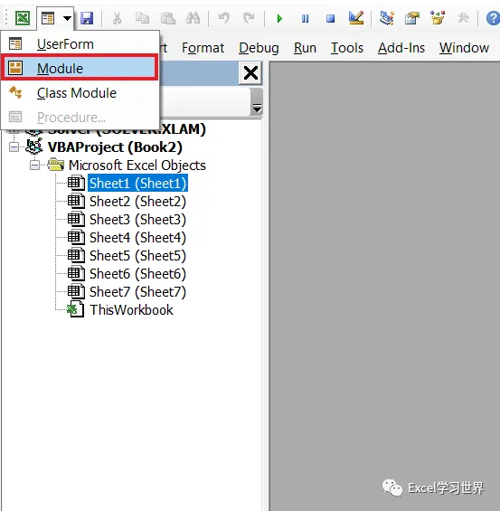 4. 按 Alt+F11 --> 在弹出的 VBE 窗体中选择菜单栏的“插入用户窗体”-->“模块”