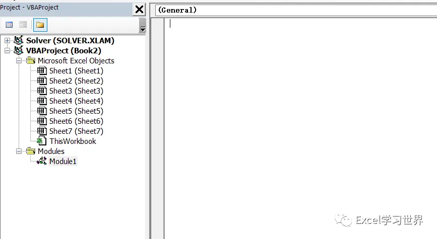 5. 在右侧的模块窗体中输入以下代码: