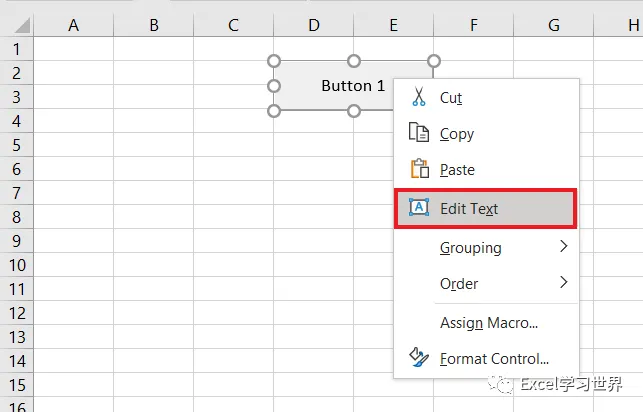 7. 选中按钮 --> 右键单击 --> 在弹出的菜单中选择“编辑文字”