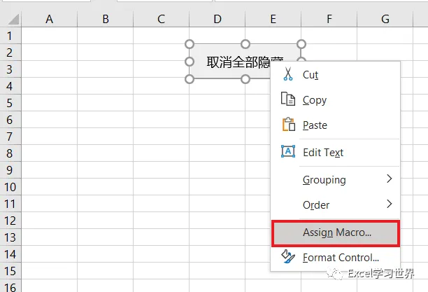 9. 再次选中按钮 --> 右键单击 --> 在弹出的菜单中选择“指定宏”