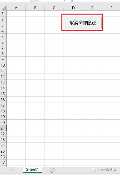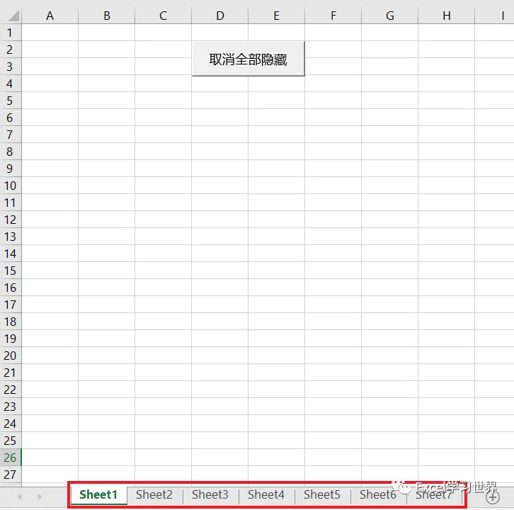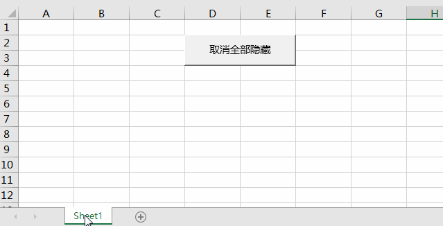 现在再次隐藏除 Sheet1 之外的多个工作表,然后点击按钮,就能批量取消隐藏所有工作表。