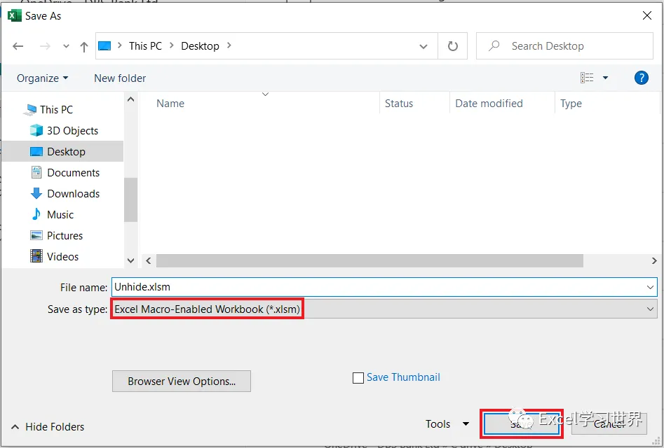 11. 按 Ctrl+S --> 将文件保存为 .xlsm 格式,这样才能正常运行宏文件。