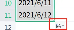 第二步,下拉填充。(选中第一个,鼠标移动到右下角,变成黑色小十字后往下拉就好)。这时,填充的是所有日期,那如何只显示工作日呢?