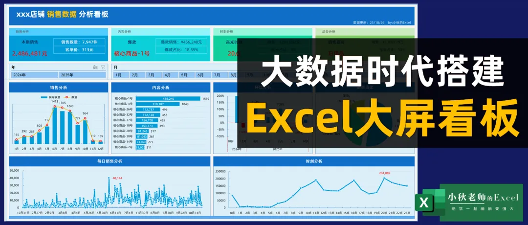 • 动态链接:年/月/品类切片器(也可插入周切片器)